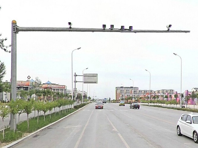 道路監(jiān)控桿也稱監(jiān)控桿與監(jiān)控立桿,立桿要求攝像機離地面高度一般不低于5米,挑臂長度3~5米,立桿下端管徑應(yīng)在220 mm±10mm、上端管徑應(yīng)在120 mm±5mm,管壁厚度應(yīng)≥6mm,表面防腐、抗臺風(fēng)。立桿基礎(chǔ)深度不低于1.5米,基礎(chǔ)直徑大于1米,采用混凝土灌筑,以確保立桿的牢固度。
